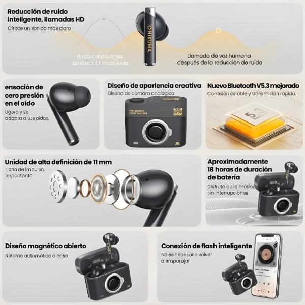 ✅ Diseño retro con innovación moderna: estilo único que destaca frente a auriculares convencionales.