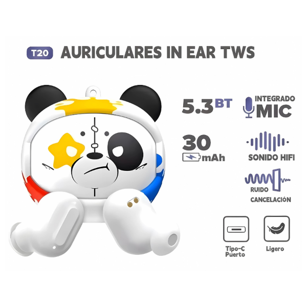 ONIKUMA T20 Magic Bear combina un diseño cyberpunk con tecnología avanzada. Con Bluetooth 5.3, estuche de carga, ultra baja latencia para gaming y control táctil fácil, son ideales para gamers, deporte y uso diario.