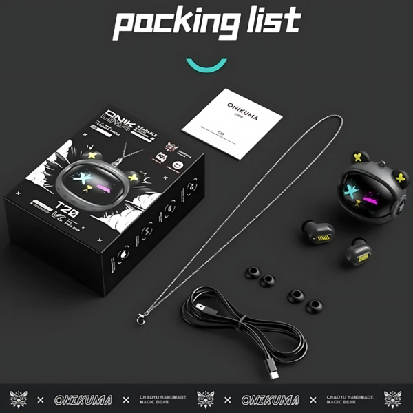 ONIKUMA T20 Magic Bear combina un diseño cyberpunk con tecnología avanzada. Con Bluetooth 5.3, estuche de carga, ultra baja latencia para gaming y control táctil fácil, son ideales para gamers, deporte y uso diario.